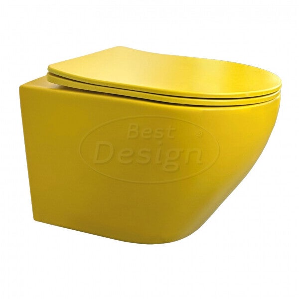 Best-Design "Morrano-49-Zonder-Spoelrand" wandcloset blinde bevestiging incl. zitting Mat-geel
