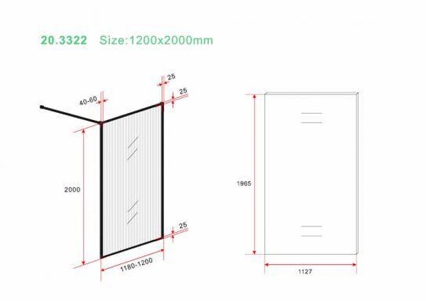 Wiesbaden "Square" inloopdouche 900x2000 8mm nano geribbeld helder glas/Mat zwart