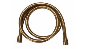 Deze mooie gladde Smooth kunststof doucheslang van Wiesbaden Sanitair is 150 cm lang en is van geborsteld koper. Een gladde doucheslang heeft als voordeel dat er geen zeepresten tussen komen te zitten. Je kunt deze doucheslang gebruiken in verschillende combinaties met onze opbouwkranen, glijstangen met wateraansluiting, handdouches, handdoucheaansluitingen en de baduitloop. Deze doucheslang heeft een universele aansluiting (1/2") en past doorgaans op alle net genoemde douche-onderdelen.