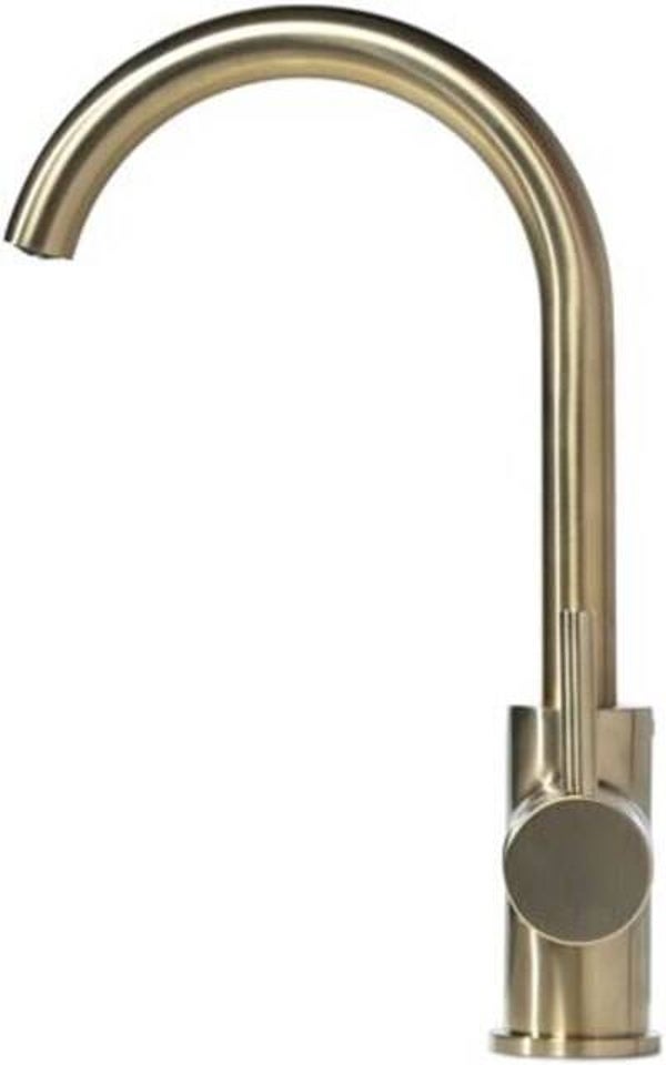 De Schiphorst-Sanitair Brondby Geborsteld goud wastafelkraan heeft een C uitloop en is gemaakt van messing. Geborsteld koper zorgt direct voor meer warmte in een ruimte, combineer u het met witte wastafel, dan creeert u een frisse/klassieke look in uw badkamer.