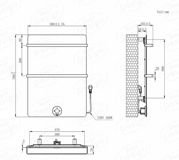 Deze radiator kan zowel horizontaal als verticaal worden gemonteerd voor flexibiliteit in installatie. Het heeft een wattage van 300 W en wordt geleverd met een digitale thermostaat voor nauwkeurige temperatuurregeling. Twee ongemonteerde handdoekbeugels zijn inbegrepen voor extra functionaliteit. Belangrijk: elektrische installatie moet worden uitgevoerd door een gekwalificeerde elektricien.