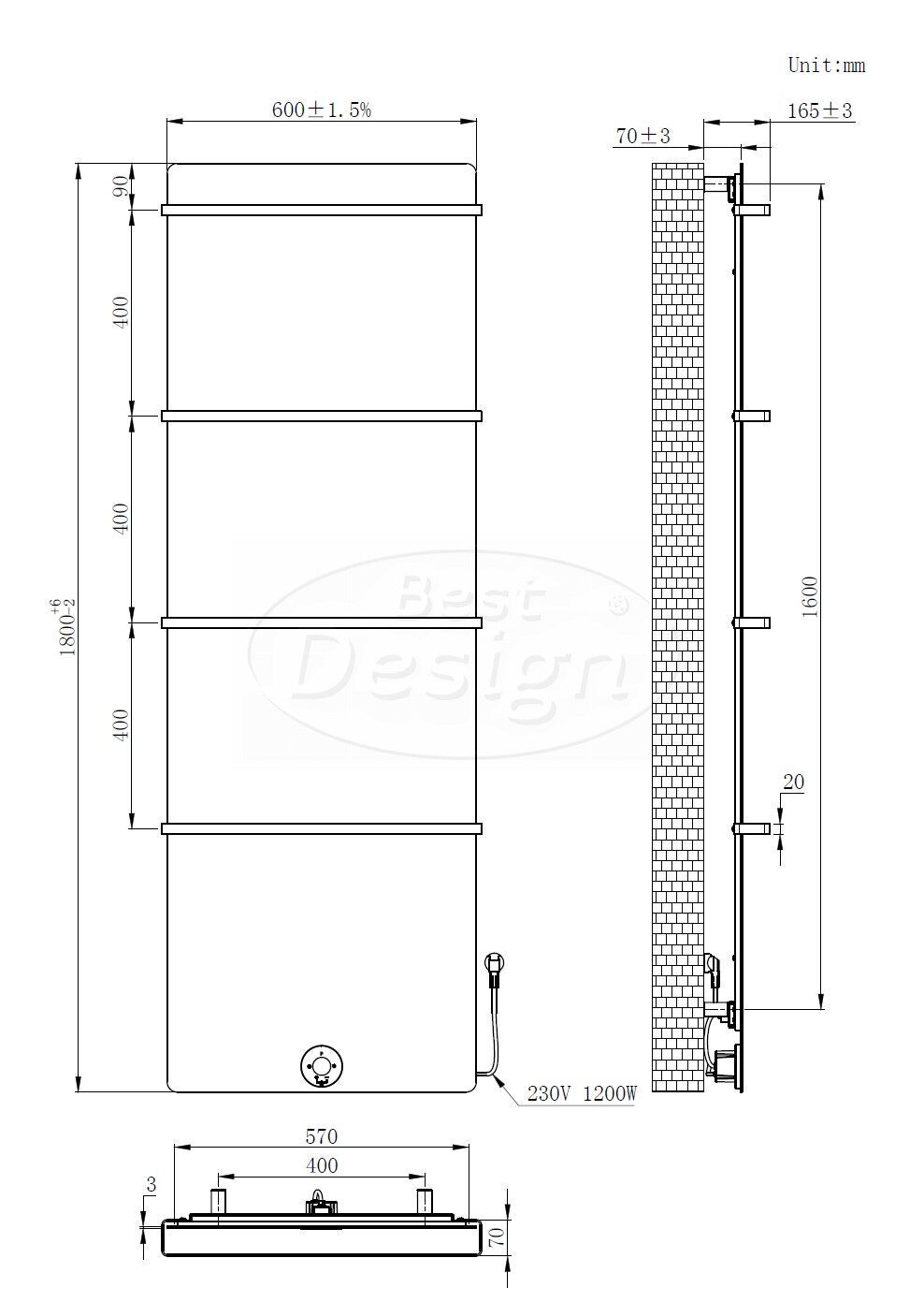 Best-Design "Brenner-Concrete" Elektrische radiator Beton-Grijs 1200W 1800x600mm
