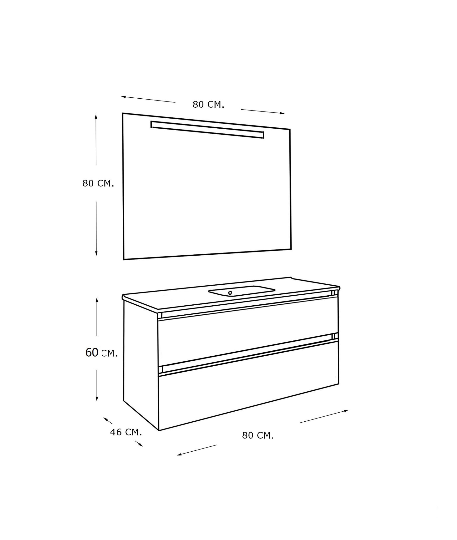 De Sephia badmeubelset is voorzien van een Onderkast 80x46x60 met een witte afwerking, met 2 lades voorzien van softclose geleiding.