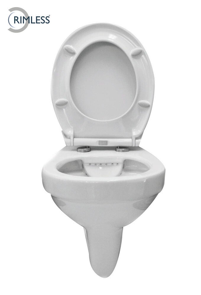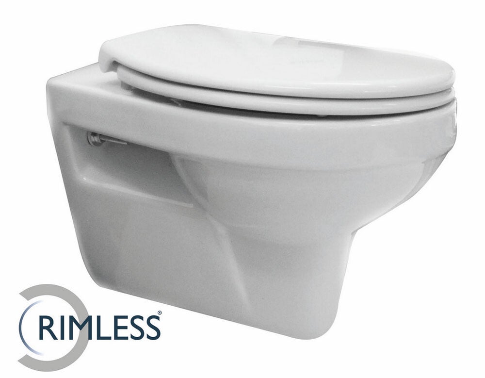 De trevi Rimless wandcloset met zitting in glans wit is door zijn luxe uitstraling en stijlvolle uiterlijk als een troon in uw badkamer of toilet.