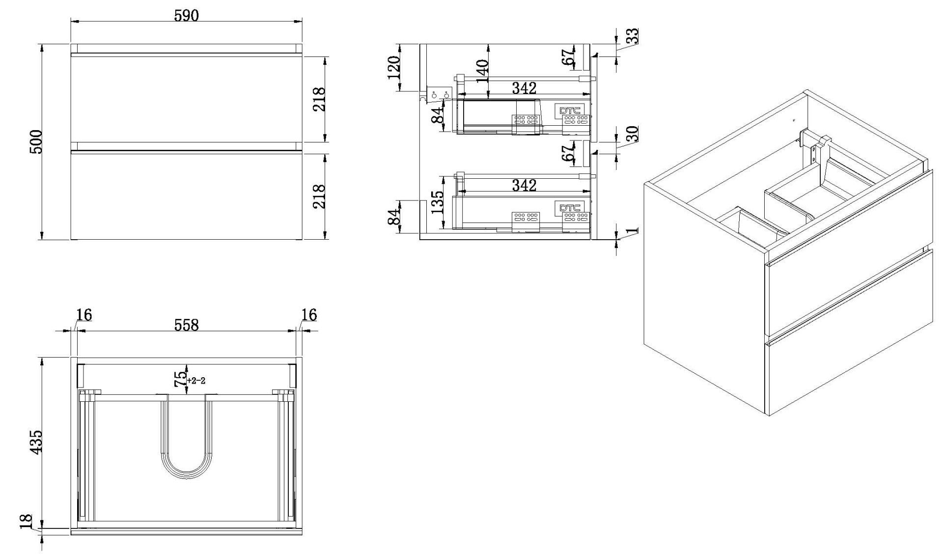 De tigris onderkast is uitstekend te combineren met de Cubic & Slope kunstmarmeren meubelwastafels, de B-stone natuurstenen meubelwastafels en de Kera keramische meubelwastafels. Deze kun je apart bij bestellen.