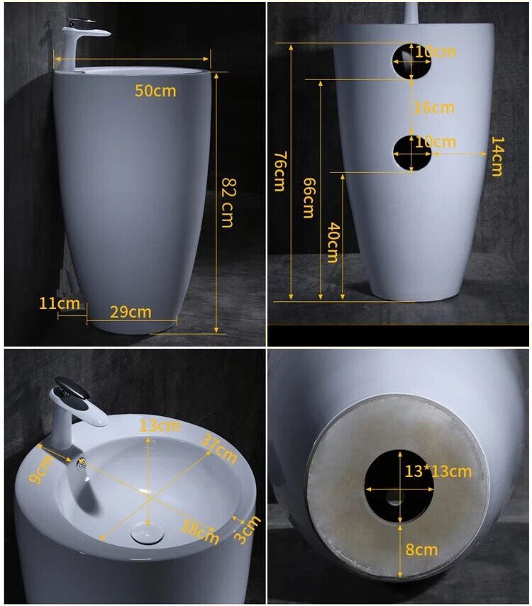 Het kraangat zit in het midden van de wastafel. Er zorg voor een bijpassende afvoer en afvoerplug.