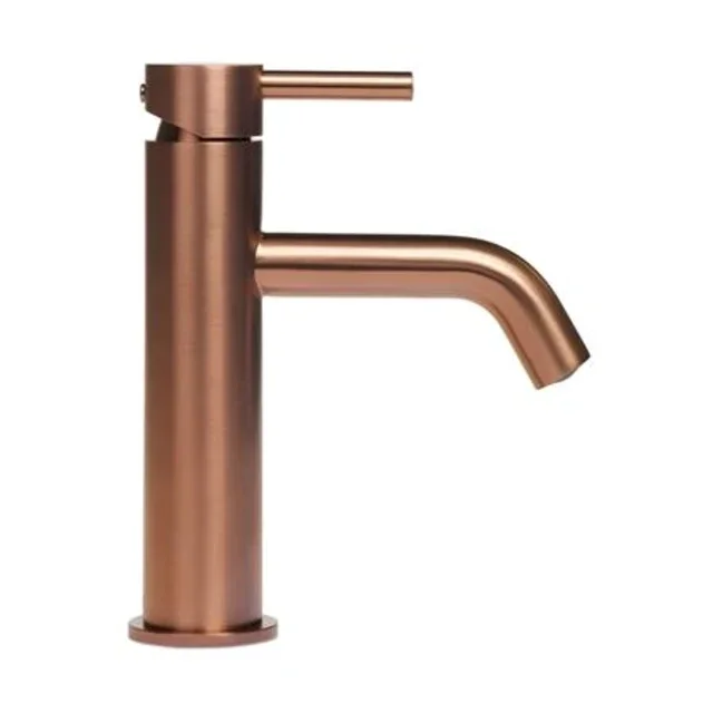 De Blue-Label Brondby wastafelkraan is 190mm hoog, en is volledig van geborsteld brons.