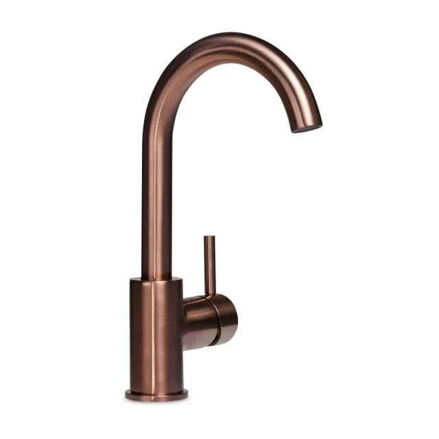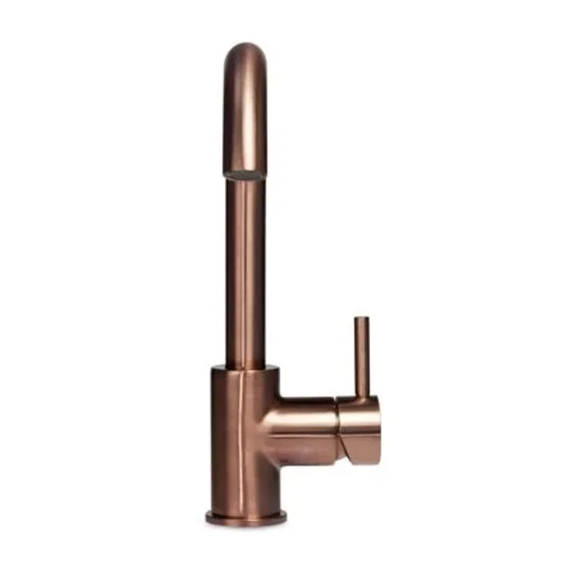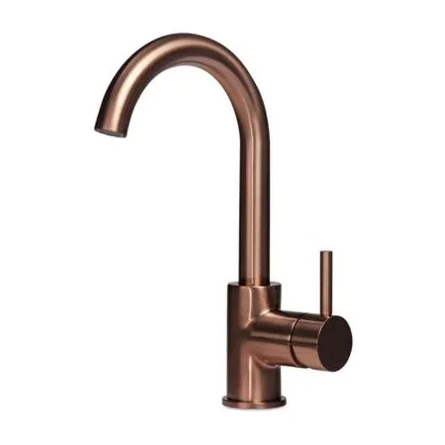 De Schiphorst-Sanitair Brondby Geborsteld koper wastafelkraan heeft een C uitloop en is gemaakt van messing. Geborsteld koper zorgt direct voor meer warmte in een ruimte, combineer u het met witte wastafel, dan creeert u een frisse/industriele look in uw badkamer.