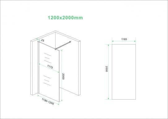 Deze inloopdouche is 120 cm breed, gemaakt van 8 mm dik gehard veiligheidsglas en met NANO-coating afgewerkt.