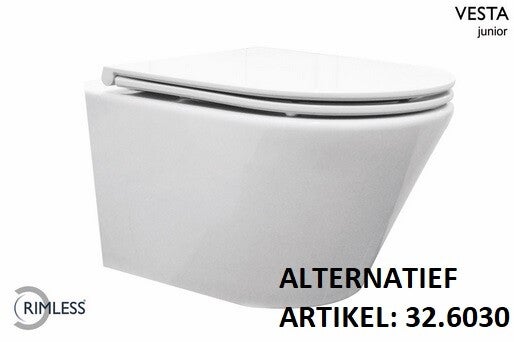 Wiesbaden "Vesta-Junior" wandcloset rimless verkort met Flatline toiletzitting softclose en quick release Glans-wit