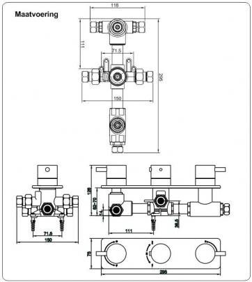 Uitvoering:3-weg douche wandmengkraan