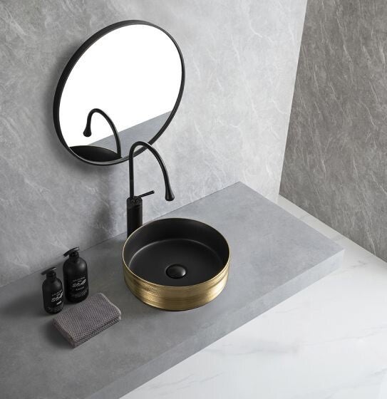 Wiesbaden "Mondri" waskom rond 36 x 36 x 12 cm Mat zwart/Geborsteld goud