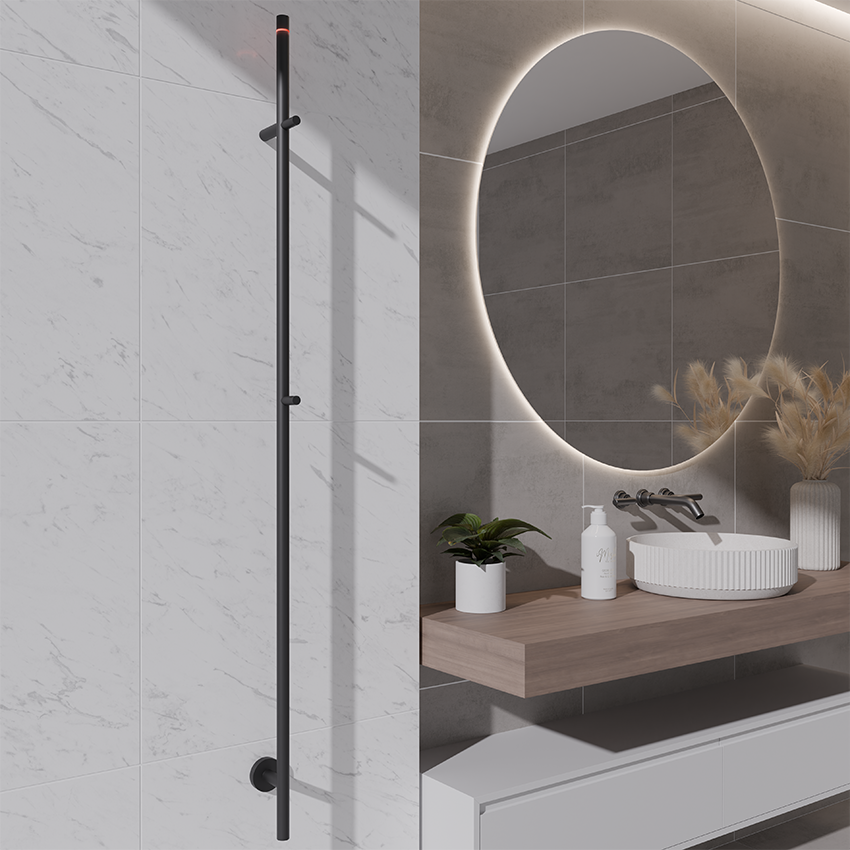 Deze mat zwarte staafhanddoekradiator is niet alleen een functioneel element in je badkamer, maar ook een stijlvolle toevoeging die zorgt voor een moderne uitstraling door zijn strakke design en matte afwerking. Dankzij zijn dunne design neemt de radiator ook weinig plek in beslag. De verfijnde haken die op de radiator zitten zijn ideaal om je handdoek(en) aan te hangen, zo heb je altijd een warme handdoek binnen handbereik. Een groot voordeel van deze elektrische radiator is dat deze vrijwel overal kan worden geïnstalleerd waar stroom beschikbaar is, in tegenstelling tot traditionele radiatoren. Verder bevindt zich de aan/uit-schakelaar boven op de elektrische verwarming, met een indicatorlicht dat aangeeft wanneer de handdoekwarmer in werking is.