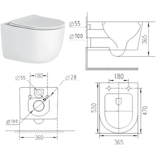 U bevestigt dit wandcloset uiteraard aan de wand. Door de blinde ophanging ziet u de bevestiging van het closet niet zitten. Dit diepspoel wandcloset is vanaf de aansluiting aan de muur 53 centimeter lang.