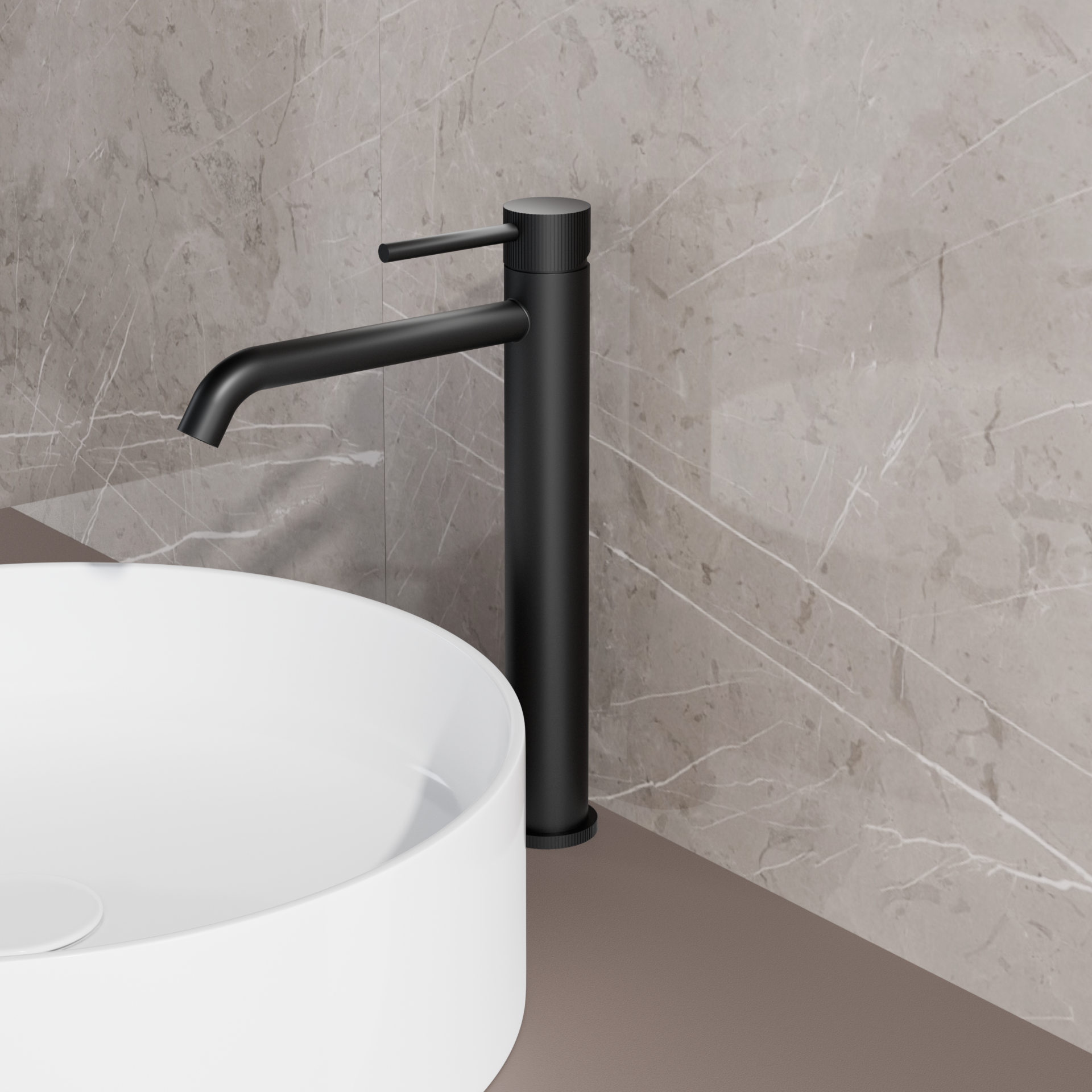 Deze hoge wastafelmengkraan is perfect voor gebruik met opbouw waskommen of tafels, waardoor hij een moderne en verfijnde uitstraling aan uw badkamer geeft. De "High-End Nero" hoge wastafelmengkraan is daarmee de ideale keuze voor wie luxe en praktische elegantie wil combineren in een stijlvolle badkamer.
