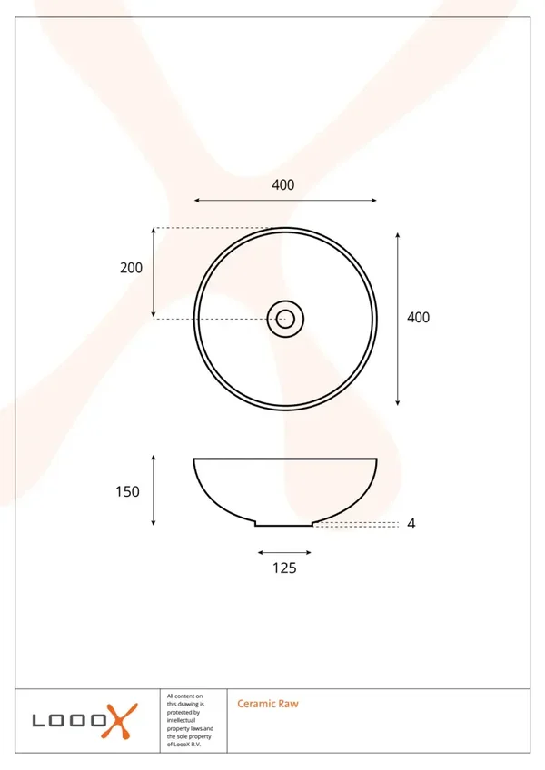 LoooX "Ceramic-Raw" keramische waskom Ø400 x 150 mm Roest