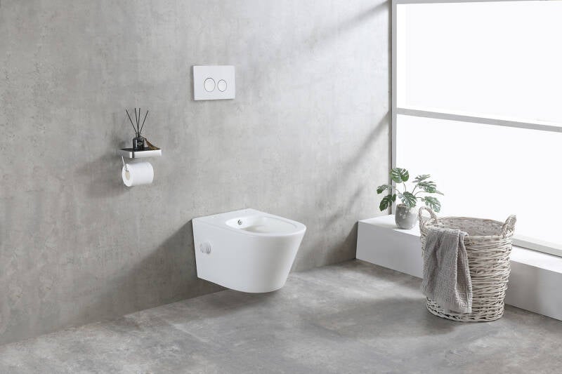 Wiesbaden "Vesta" wandcloset rimless met bidetkraan koud water Glans-wit
