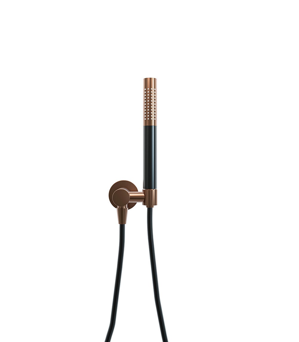 Wiesbaden "UniMatch" handdoucheset met staafhanddouche 1 stand, doucheslang en wandaansluitbocht Geborsteld brons koper/Mat-zwart