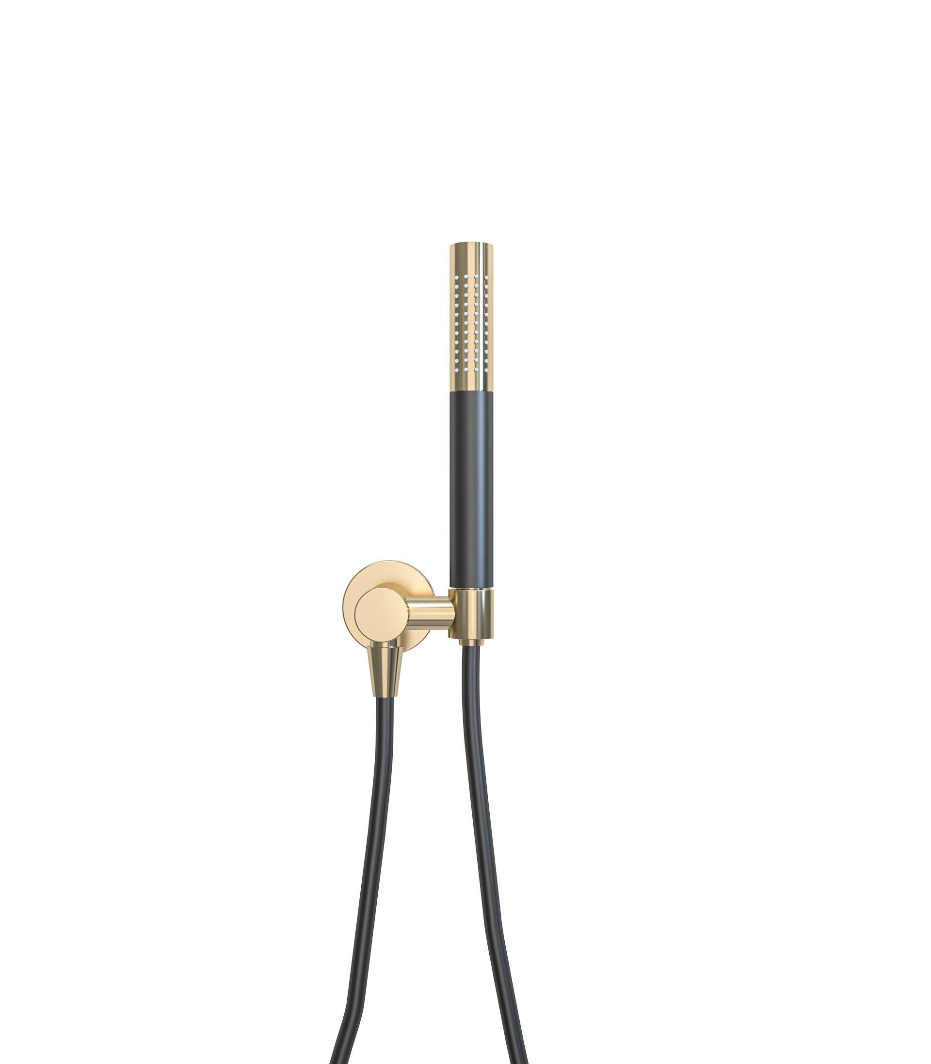 Wiesbaden "UniMatch" handdoucheset met staafhanddouche 1 stand, doucheslang en wandaansluitbocht Geborsteld messing/Mat-zwart