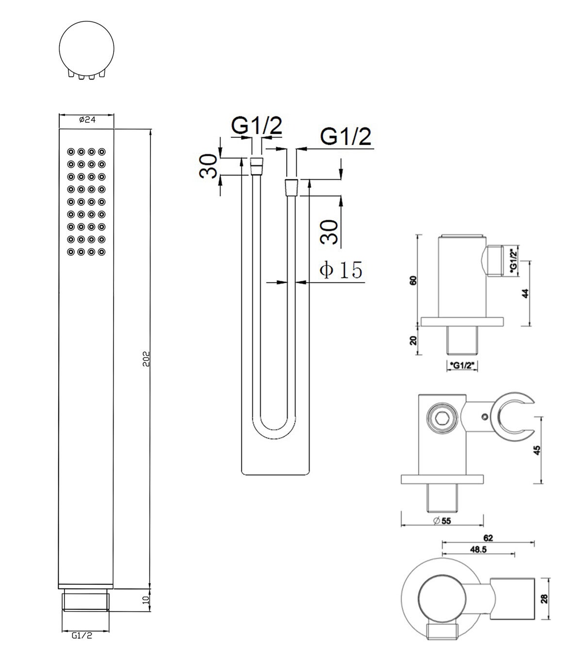 Kies voor de Unimatch staafhanddoucheset van Wiesbaden Sanitair, zodat je niet alle onderdelen los hoeft te bestellen. Deze set bestaat namelijk uit een mooie staafhanddouche, een handdouchehouder en een doucheslang van 150 cm lang. Door de universele aansluiting van de doucheslang kun je de staafhanddoucheset aansluiten op bijna alle opbouwkranen.