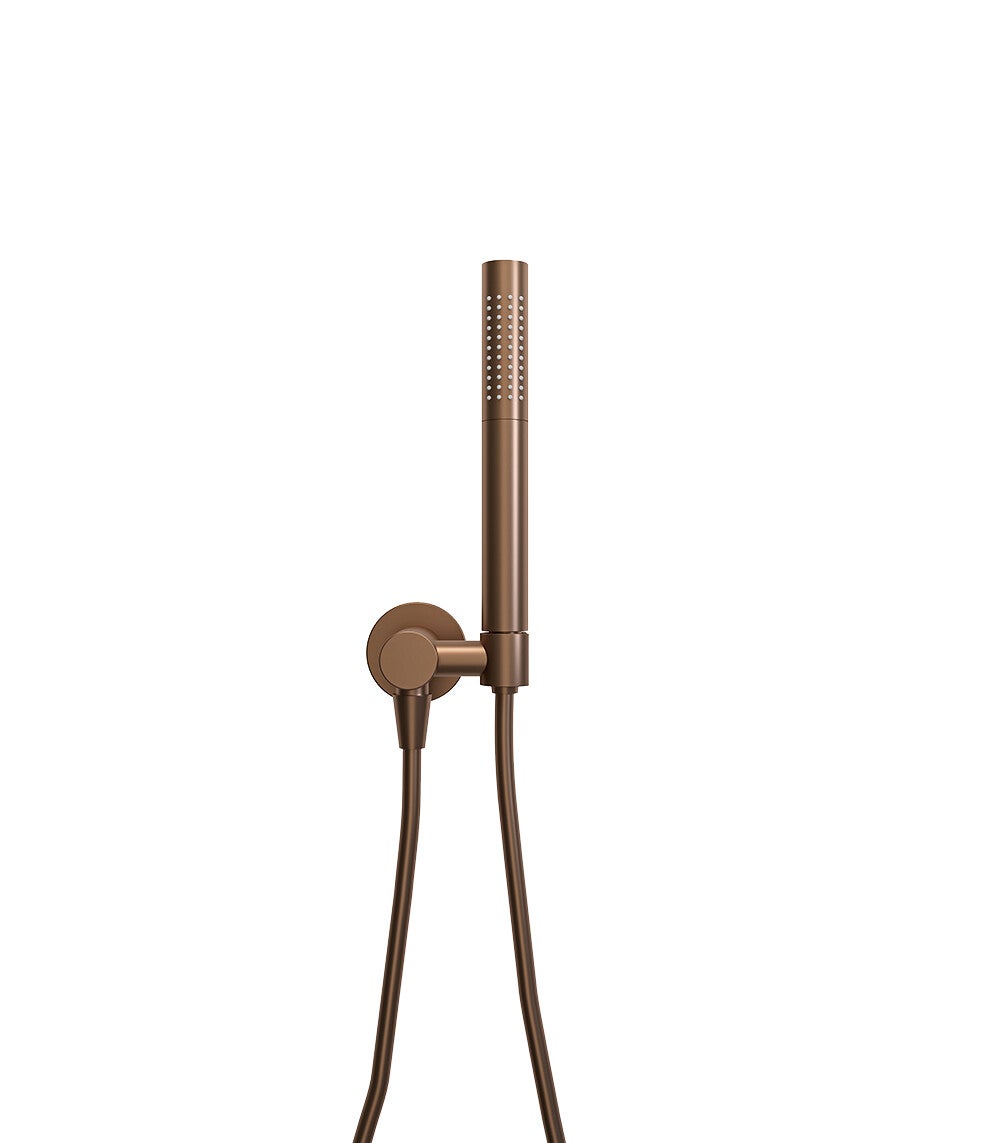 Wiesbaden "UniMatch" handdoucheset met staafhanddouche 1 stand, doucheslang en wandaansluitbocht Geborsteld brons koper