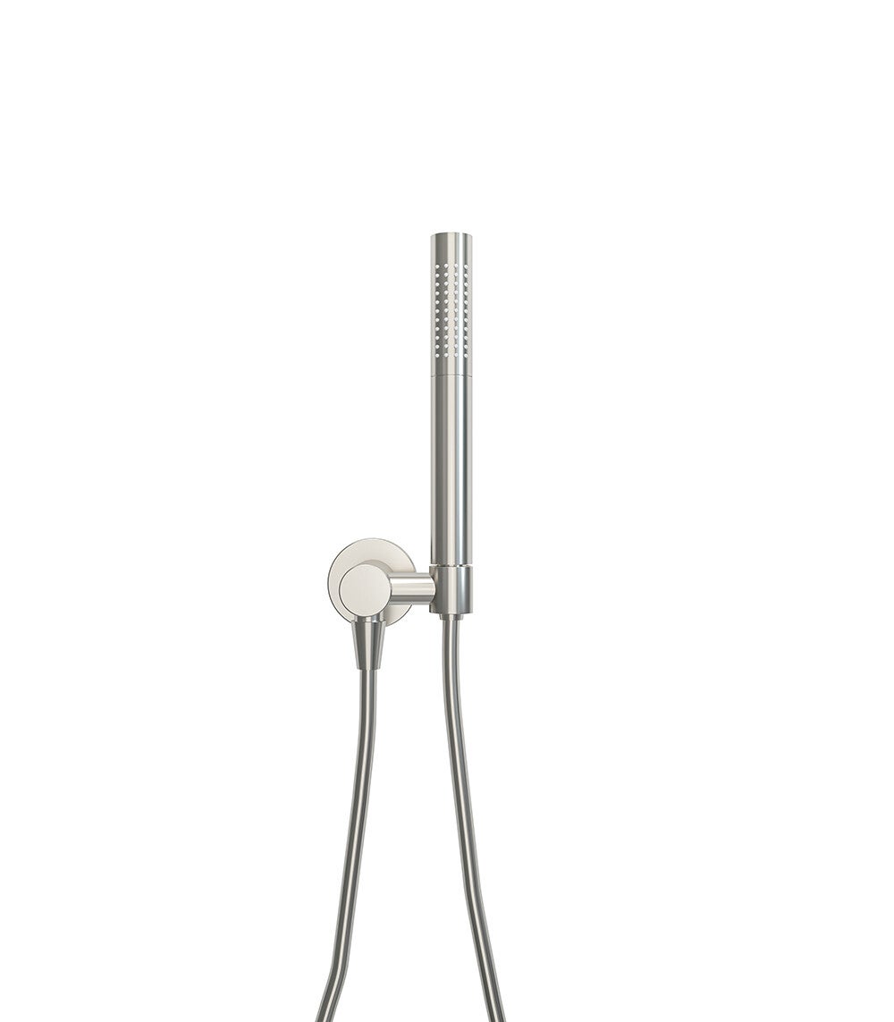 Wiesbaden "UniMatch" handdoucheset met staafhanddouche 1 stand, doucheslang en wandaansluitbocht Geborsteld staal