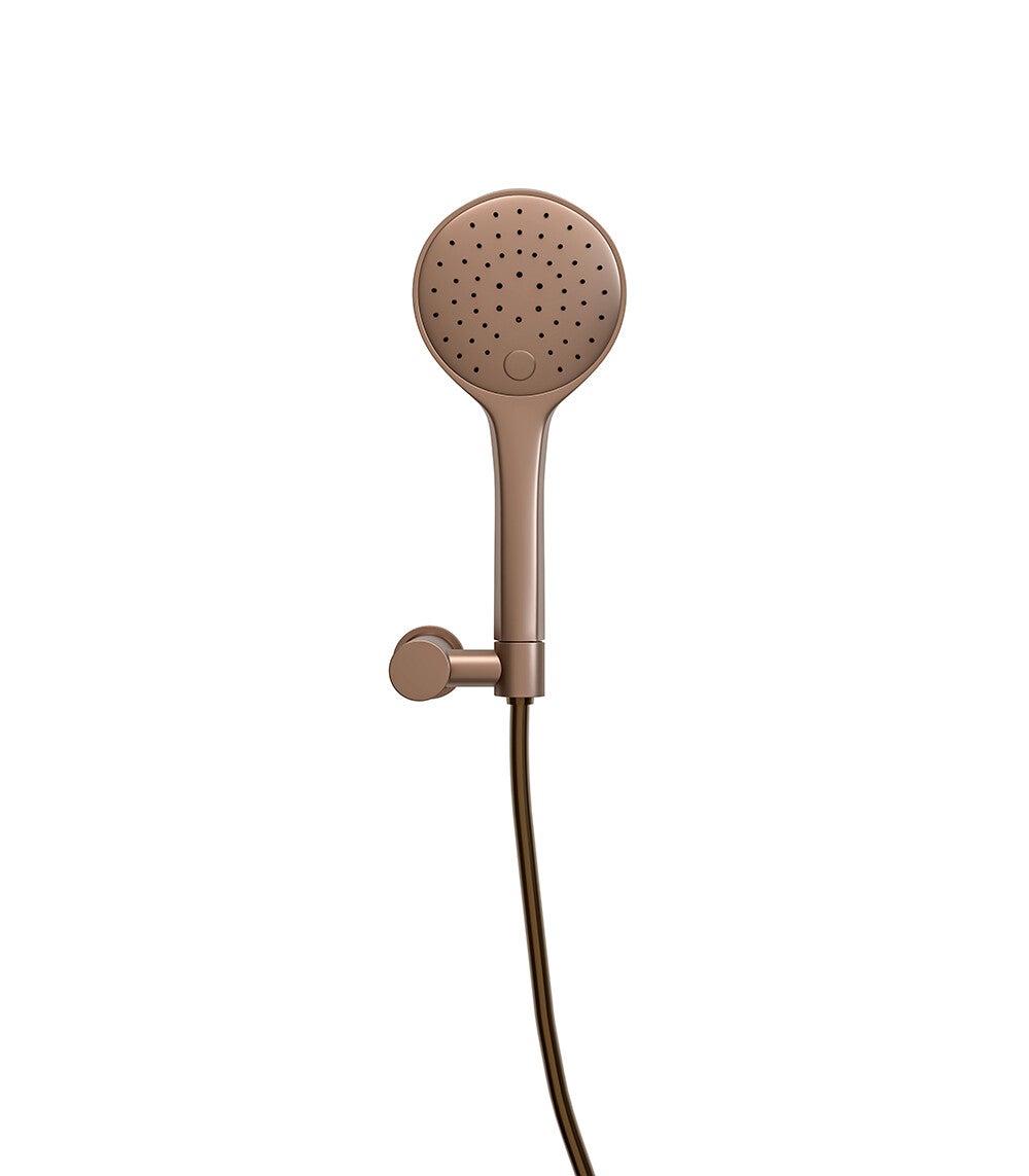 Wiesbaden "UniMatch" handdoucheset met handdouche 3 standen Ø 12 cm, doucheslang en wandhouder kantelbaar Geborsteld brons koper