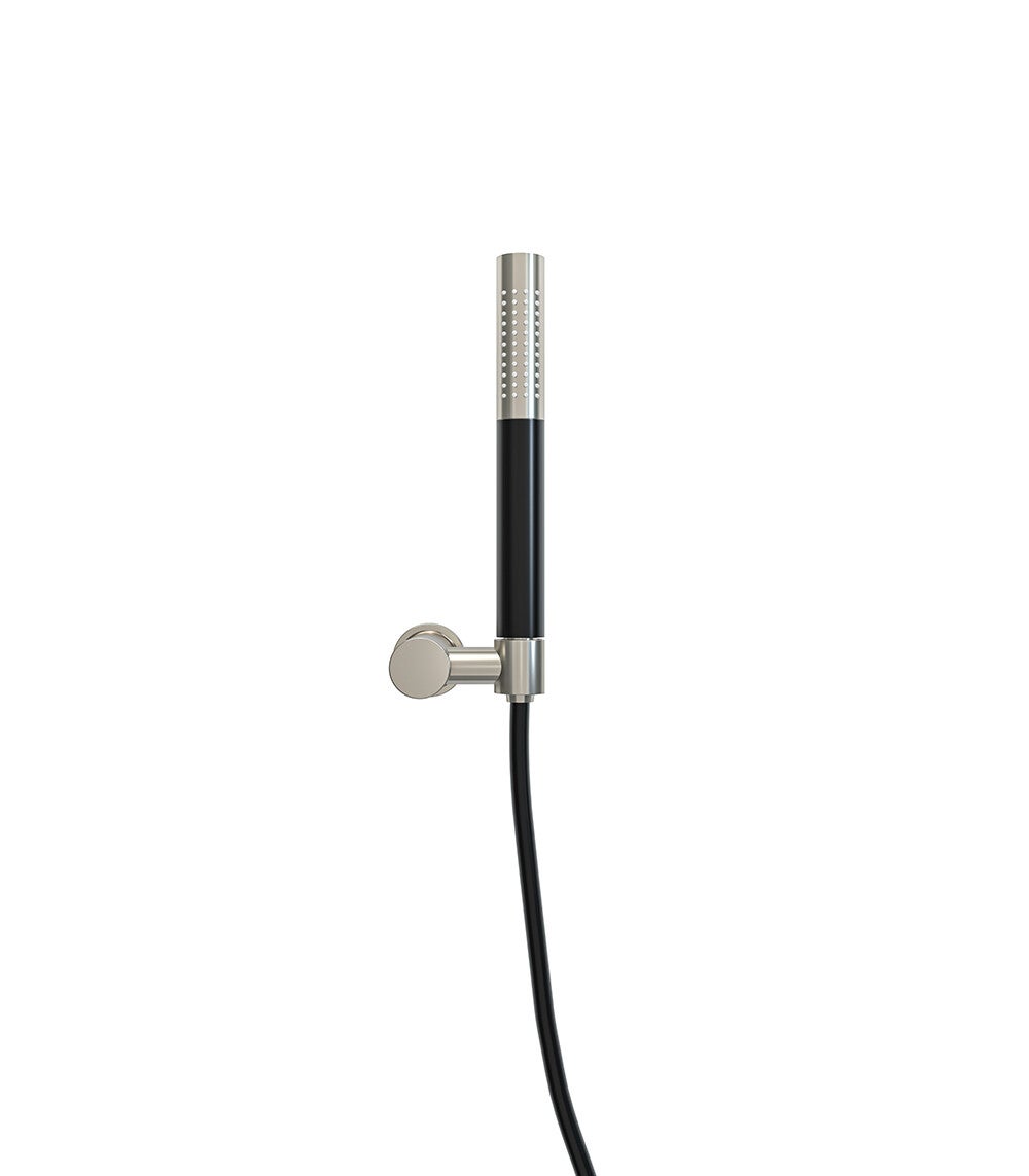 Wiesbaden "UniMatch" handdoucheset met staafhanddouche 1 stand, doucheslang en wandhouder kantelbaar Geborsteld staal/Mat-zwart