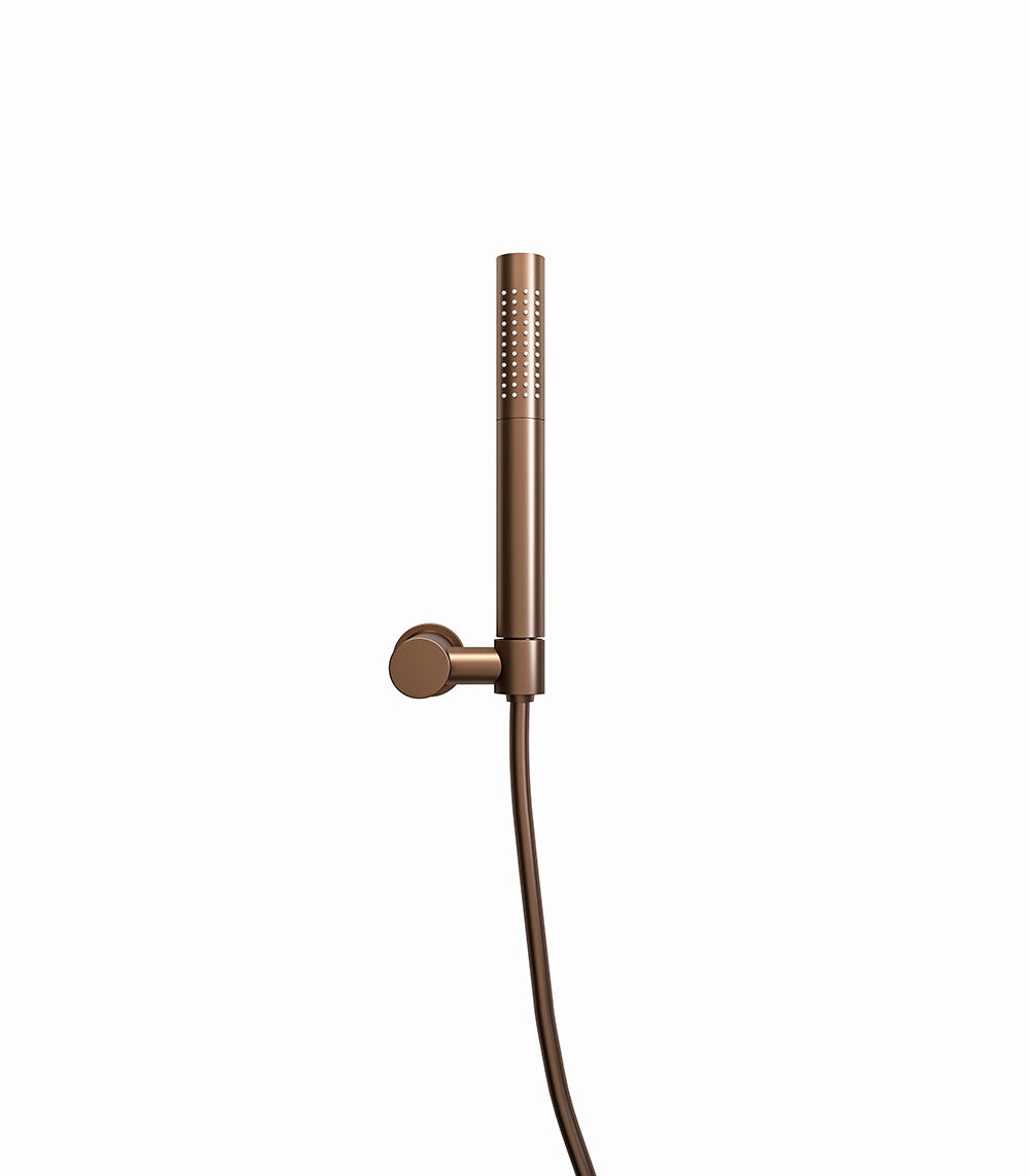 Wiesbaden "UniMatch" handdoucheset met staafhanddouche 1 stand, doucheslang en wandhouder kantelbaar Geborsteld brons koper