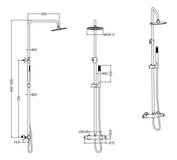 - een thermostatische douchemengkraan (met een hartafstand van 15 cm);