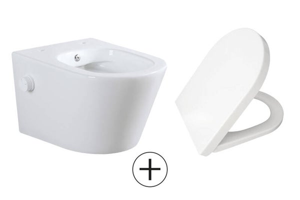 Het Vesta wandcloset rimless met bidetkraan en Vesta toiletzitting biedt de ultieme toiletervaring met een moderne uitstraling en innovatieve functionaliteit. Het rimless ontwerp zorgt voor een optimale hygiëne, omdat er geen verborgen rand is waar vuil en bacteriën zich kunnen ophopen. Hierdoor is het onderhoud eenvoudiger en blijft je toilet langer fris. De ingebouwde bidetfunctie voegt daar nog eens extra comfort aan toe. Geniet van een verfrissende en hygiënische ervaring, elke keer dat je het toilet gebruikt. Dit wandcloset is niet alleen functioneel, maar ook een stijlvolle toevoeging aan je badkamer. Verkrijgbaar in mat zwart, glanswit en mat wit.