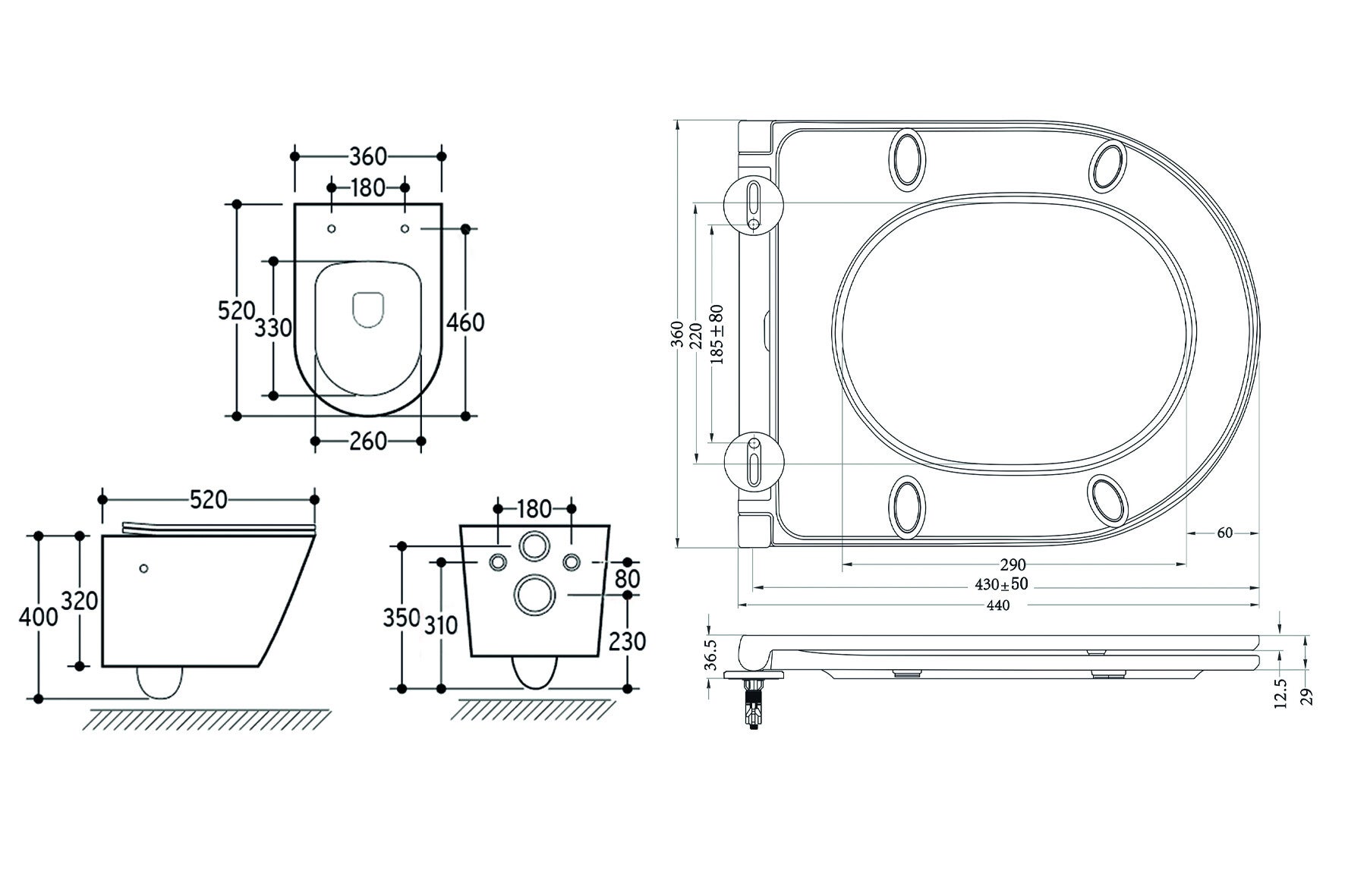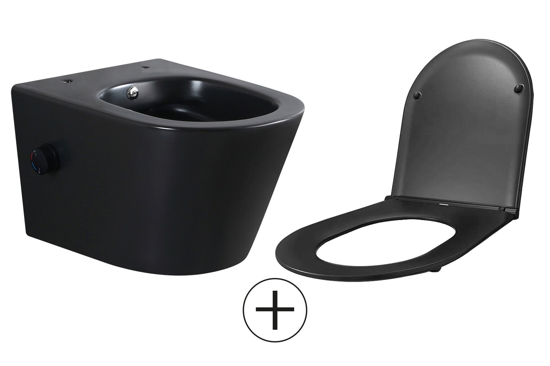 Wiesbaden "Vesta" wandcloset rimless met bidetkraan warm/koud water met Flatline toiletzitting Mat-zwart