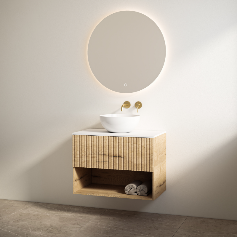 Een badkamermeubel moet niet alleen mooi zijn, maar ook slim ingedeeld. De Rigatti-78 biedt een moderne, luxe uitstraling met een Halifax onderkast en een bijpassend Halifax meubelblad. De softclose-lade zorgt voor nette opbergruimte, terwijl het open schap ideaal is voor handdoeken of stijlvolle accessoires. Het meubelblad heeft geen voorgeboord kraangat of afvoergat, waardoor de ideale opstelling naar wens kan worden bepaald. Voor een staande wastafelkraan kan eenvoudig een kraangat worden gemaakt. Bij een inbouw-wandmengkraan blijft het blad ongewijzigd.