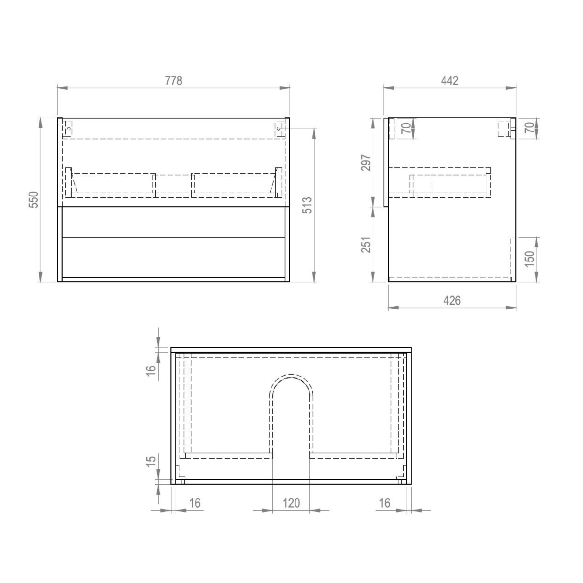 Let op: Het weergegeven meubel op de foto is gebaseerd op de breedte van Rigatti-78cm; voor de exacte afmeting van het meubel verwijzen wij naar de technische tekening.