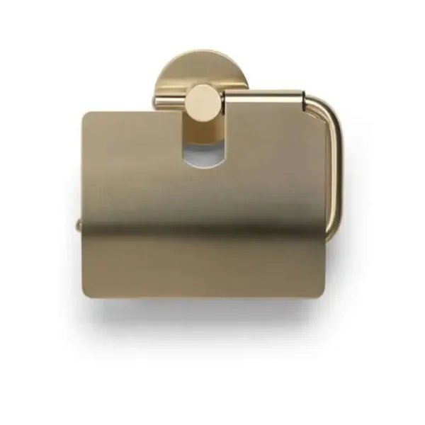 De Schiphorst-Sanitair Vida Toiletrolhouder met klep, is gemaakt van messing met een goude kleur, met een geborstelde afwerking.