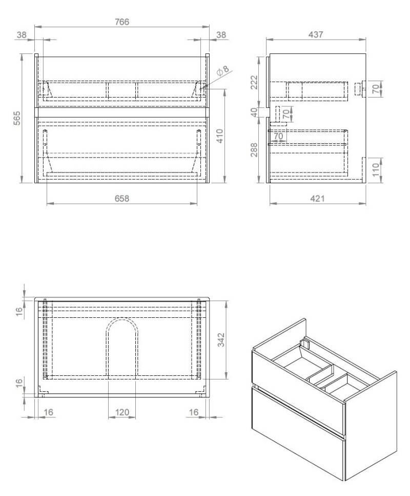 Let op: Het weergegeven meubel op de foto is gebaseerd op de breedte van Quick-80cm; voor de exacte afmeting van het meubel verwijzen wij naar de technische tekening.