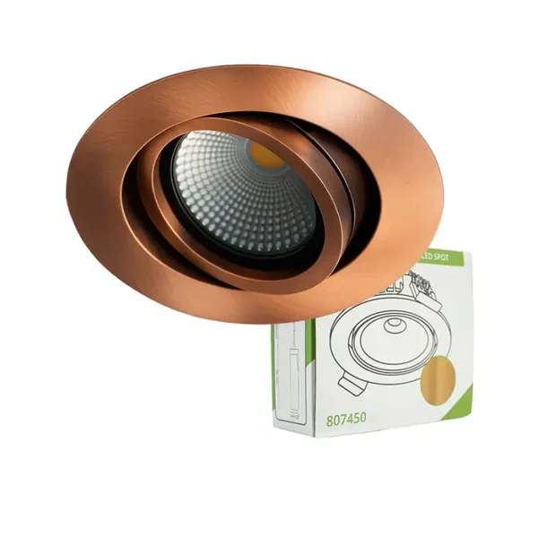 Deze geborsteld koper spot klemt zich bij plaatsing in het plafond. Tevens is deze spot volledig naar wens te richten, doordat deze spot armatuur kantelbaar is. Met de bijgeleverde doorlusdriver kun je moeiteloos meerdere spots aan elkaar koppelen zonder de noodzaak van afzonderlijke kabels te leggen. Met de handige white switch kun je eenvoudig schakelen tussen de kleurtemperaturen van 2700K, 3000K en 4000K, waardoor je voor elke ruimte de gewenste sfeer kunt creëren.