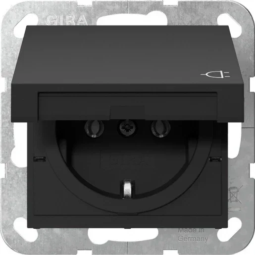 Gira "System 55" stopcontact met randaarde met klep Mat-zwart