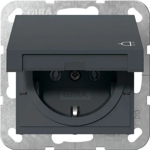 Gira "System 55" stopcontact met randaarde met klep Antraciet