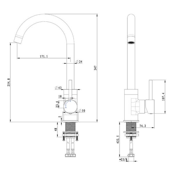De Moya-Son keukenmengkraan is een stijlvolle toevoeging aan elke moderne keuken. Met een totale hoogte van 35 cm en een gunmetal kleur brengt deze kraan een vleugje elegantie in uw interieur. De draaibare uitloop biedt flexibiliteit en gemak bij het vullen van potten en pannen. Met de meegeleverde flexibele aansluitslangen van 35 cm en een 3/8″ wartel kunt u de kraan eenvoudig installeren. De Son keukenmengkraan heeft een gemengd koud/warm kraan, waardoor u de watertemperatuur naar wens kunt aanpassen. Het keramisch binnenwerk zorgt voor een soepele bediening. Een perfecte keuze voor wie op zoek is naar een moderne en functionele keukenkraan.
