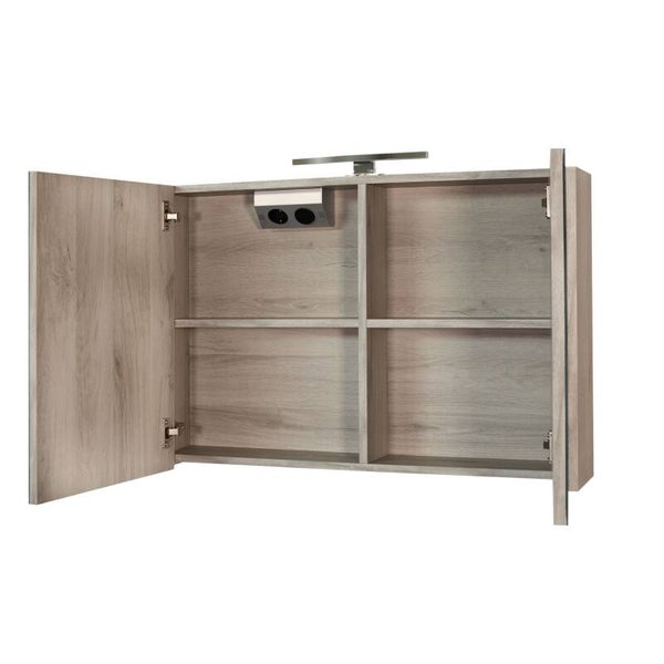 De “Happy-Frosted-Brown” MDF spiegelkast + verlichting in het formaat 80×60 cm voegt een vleugje rustieke elegantie toe aan je badkamer. Met een bruine eikenhouten afwerking biedt deze kast een warme en natuurlijke uitstraling. Met twee deuren en een interne plank biedt deze spiegelkast voldoende opbergruimte voor je badkamerbenodigdheden. De inbegrepen LED sfeerverlichting en stopcontact verhogen de functionaliteit en creëren een aangename sfeer. Geschikt voor badkamers en eenvoudig te monteren aan de wand, past deze kast goed in eigentijdse badkamerontwerpen. Kortom, de “Happy-Frosted-Brown” MDF spiegelkast + verlichting van 80×60 cm voegt een uniek karakter en slimme opslagmogelijkheden toe aan je badkamer, met een eigentijdse uitstraling die opvalt.
