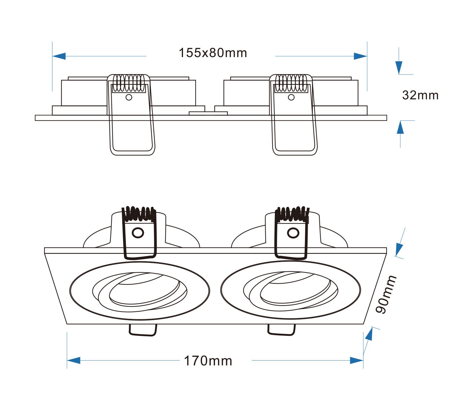 Buiten afmeting: 155x80 mm
