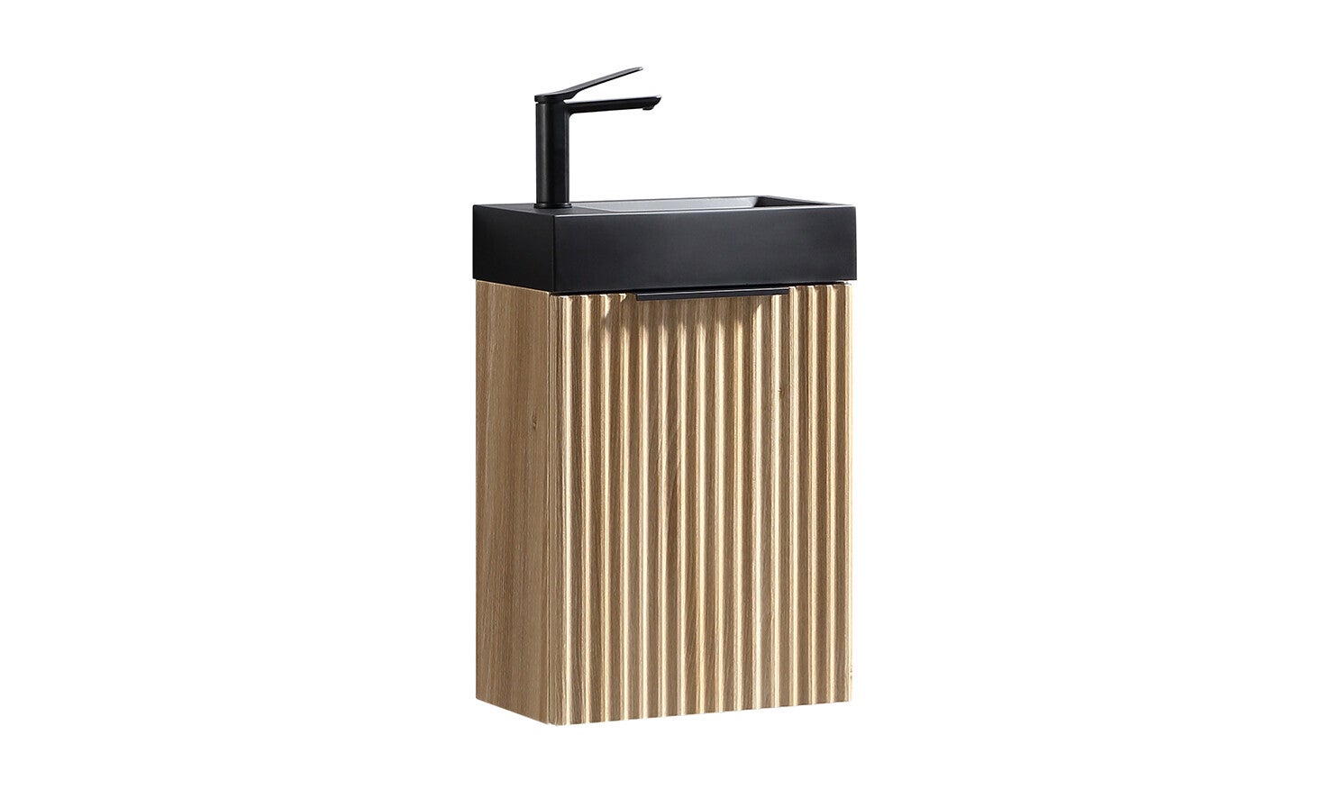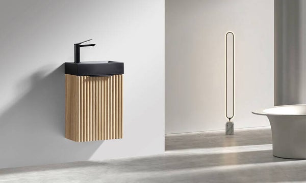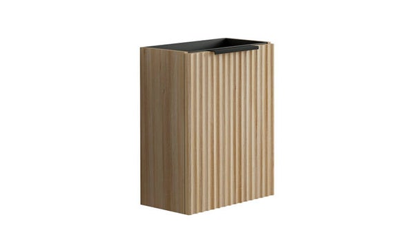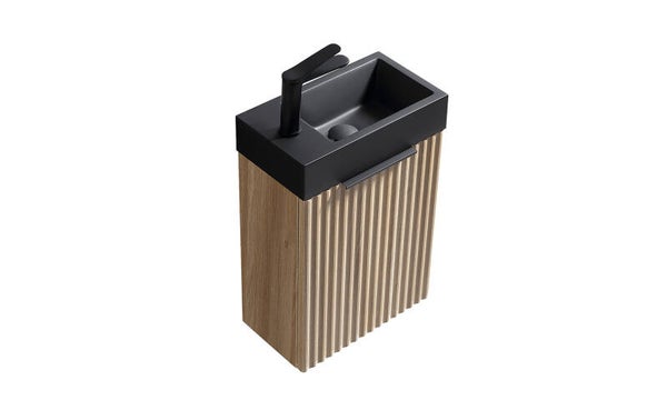 De Ribbella fonteinkast brengt warmte en karakter in iedere toiletruimte. De stijlvolle ribbelfronten in naturel eikenlook geven het meubel een moderne, maar tegelijkertijd tijdloze uitstraling. Dankzij het compacte formaat is deze fonteinkast perfect voor kleinere ruimtes, terwijl je toch profiteert van praktische opbergruimte voor toiletartikelen. De strakke afwerking en subtiele details zorgen voor een luxe uitstraling die moeiteloos combineert met diverse wastafel- en kraanopties.