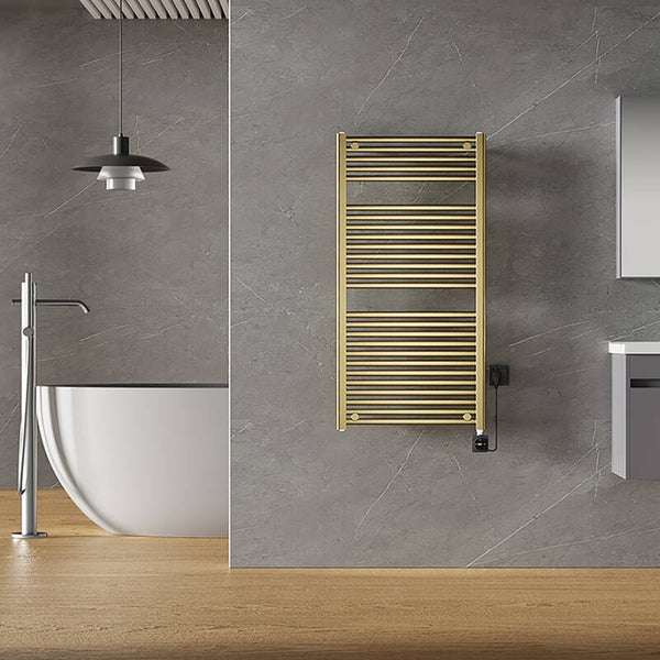 Wiesbaden "Elara" elektrische radiator Smart WiFi 118,5 x 60 cm Geborsteld messing PVD