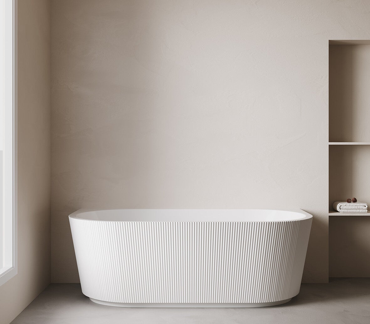 Het geribbelde designbad is de eyecatcher voor elke moderne badkamer.
