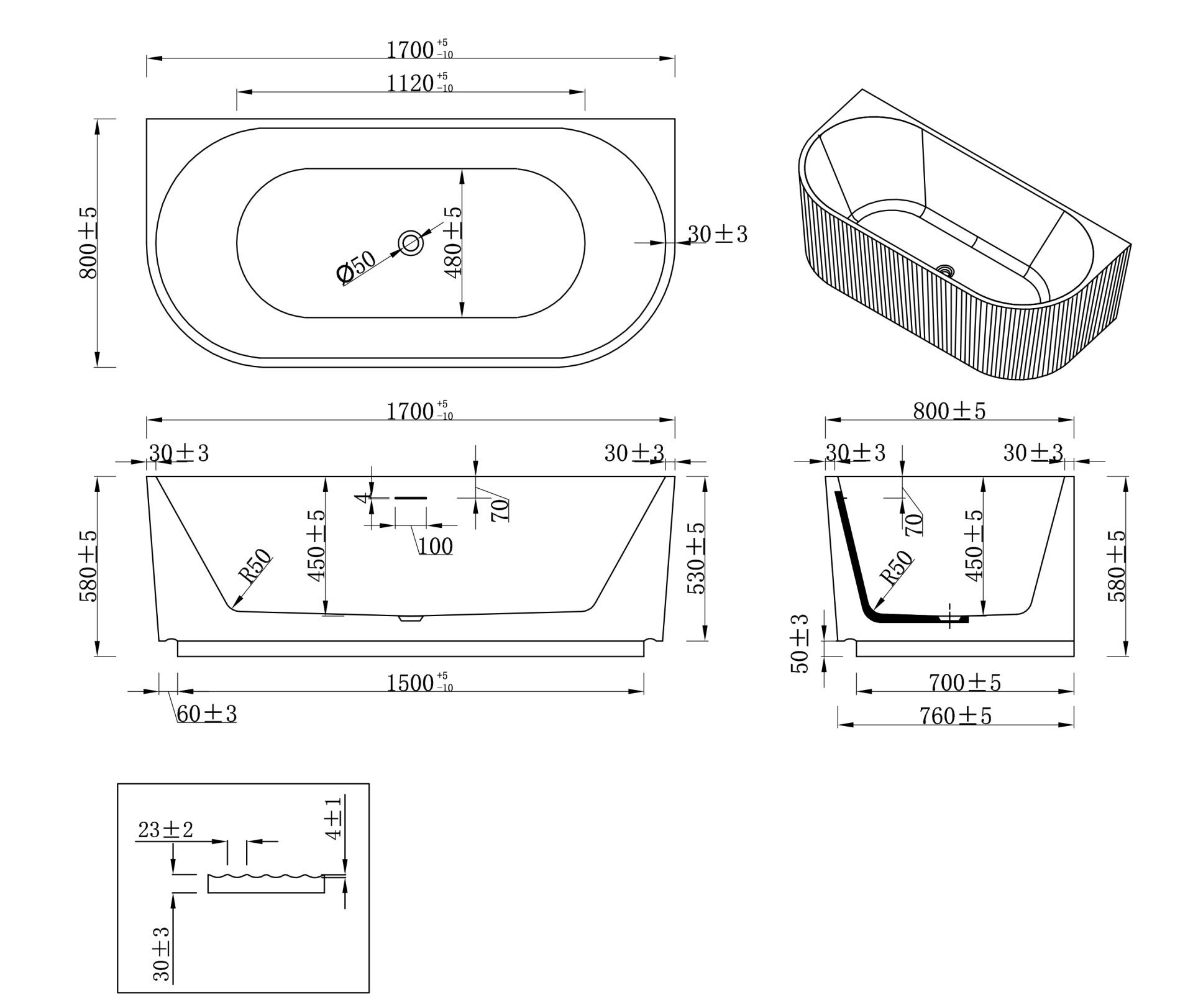 Verkrijgbaar als hoekbad of half vrijstaand bad, zodat het moeiteloos past in elke ruimte. De ribbelstructuur geeft het bad een trendy en originele uitstraling.