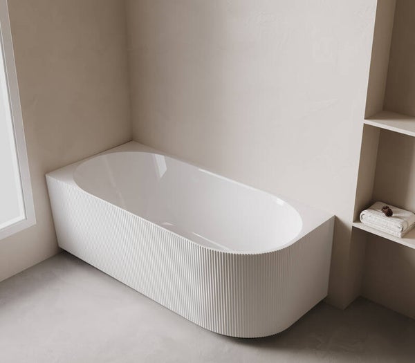 Verkrijgbaar als hoekbad of half vrijstaand bad, zodat het moeiteloos past in elke ruimte. De ribbelstructuur geeft het bad een trendy en originele uitstraling.