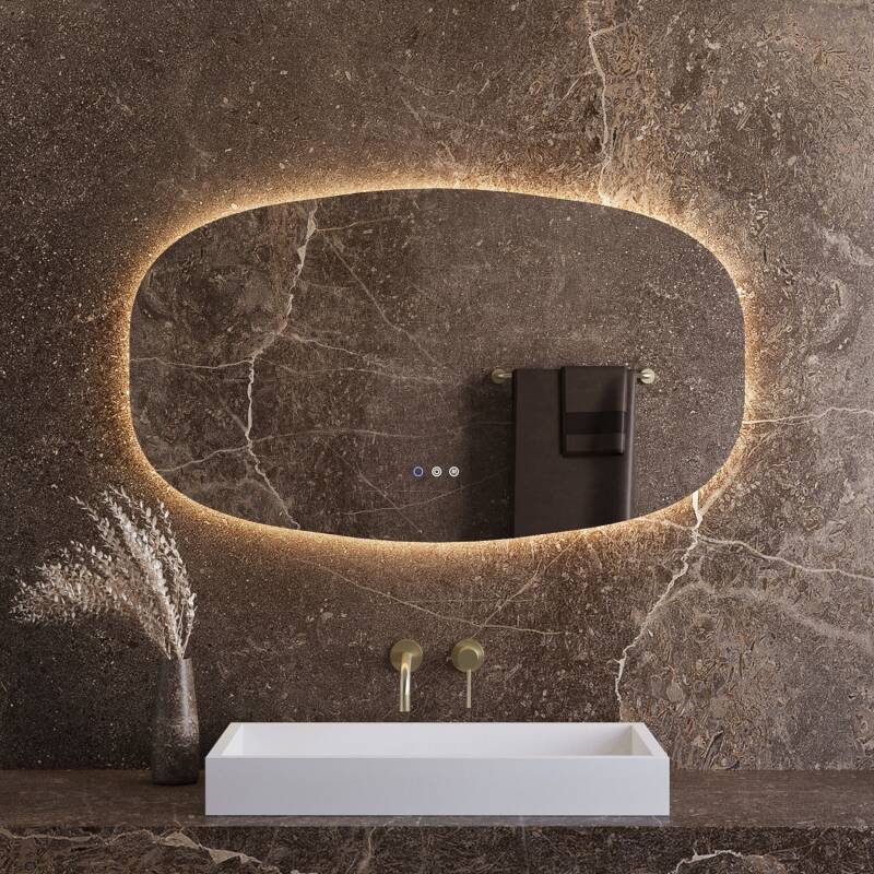 Best-Design "Baunach" Deens-Ovaal spiegel incl.verwarming, 3 kleuren Direct & Indirect LED verlichting, dimbaar 120 x 70 cm