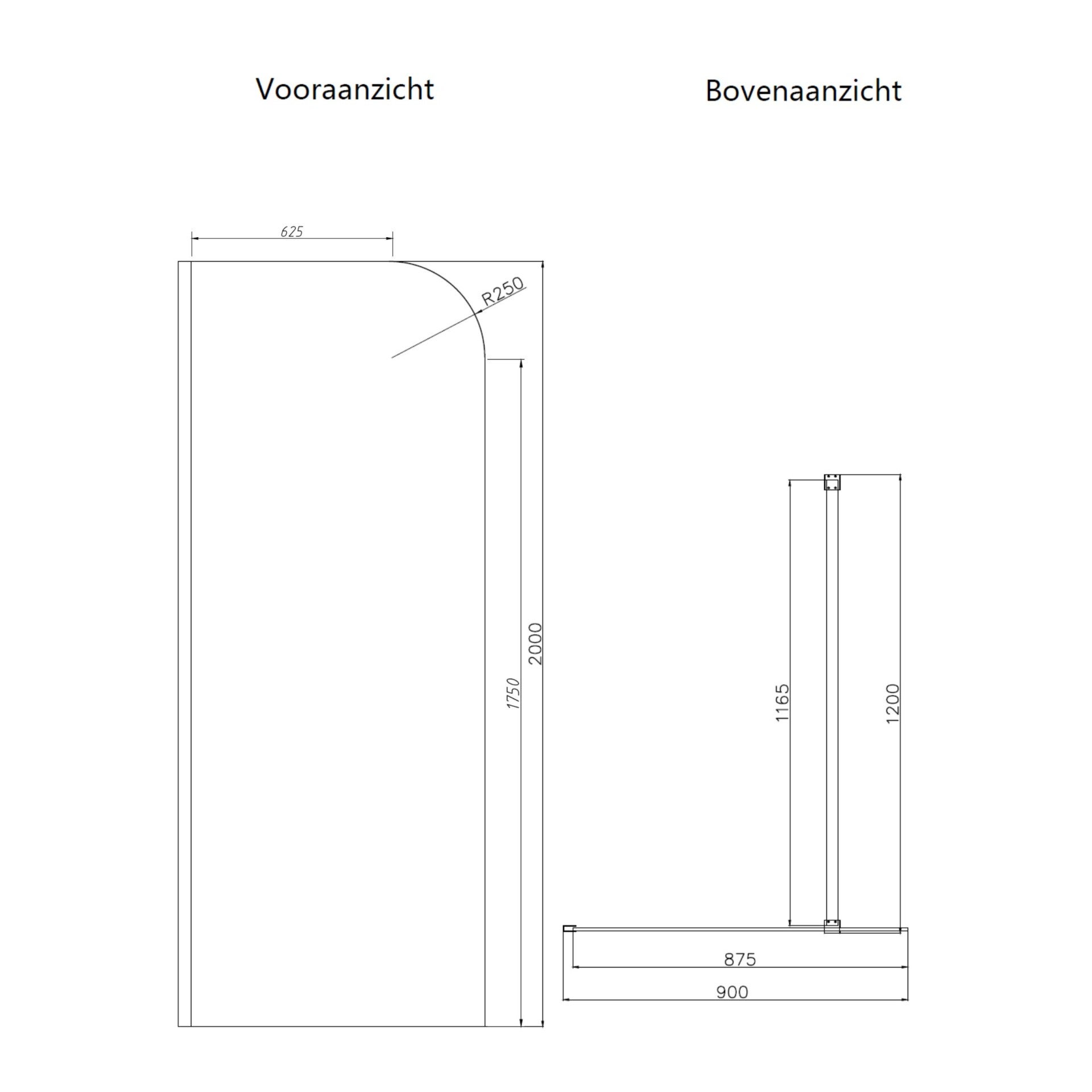 Het echte onderscheidende element van deze inloopdouche is het afgeronde glas aan de bovenzijde. Deze subtiel gebogen vorm voegt een verfijnd en elegant designaccent toe en doorbreekt de strakke lijnen van een traditionele inloopdouche. Het afgeronde glas zorgt voor een zachte uitstraling en maakt de douche tot een echte eyecatcher in de badkamer.