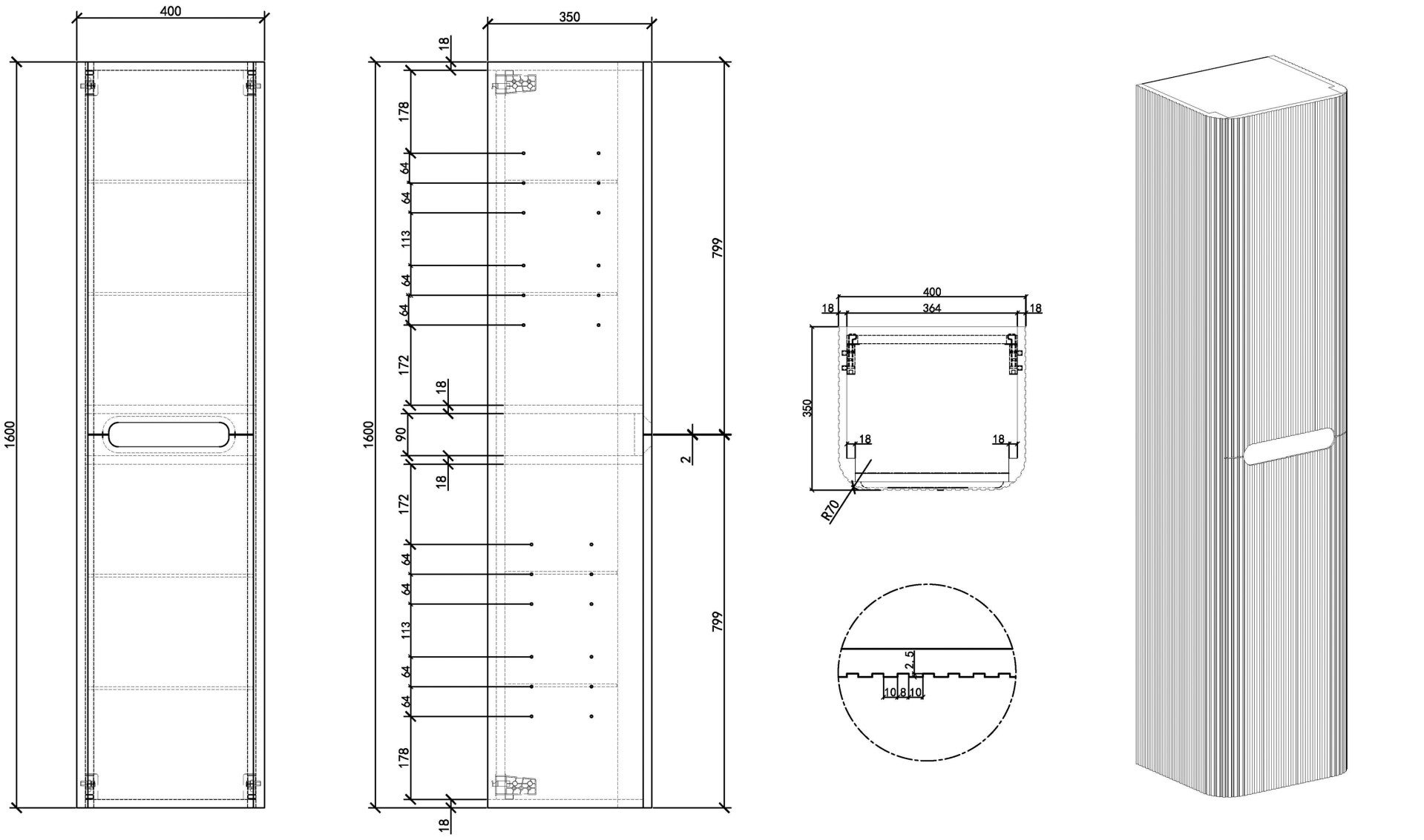 De Sulora kolomkast is een echte blikvanger dankzij de subtiele verticale ribbels en de zachte ronde vormen. De kast is voorzien van 2 deuren met daarachter maar liefst 6 praktische plankjes, ideaal voor het overzichtelijk opbergen van handdoeken en verzorgingsproducten . Dankzij het praktische formaat benut je de hoogte van de ruimte optimaal zonder veel vloeroppervlak in te nemen. De Sulora kolomkast is verkrijgbaar in meerdere kleuren en perfect te combineren met de Sulora onderkast.